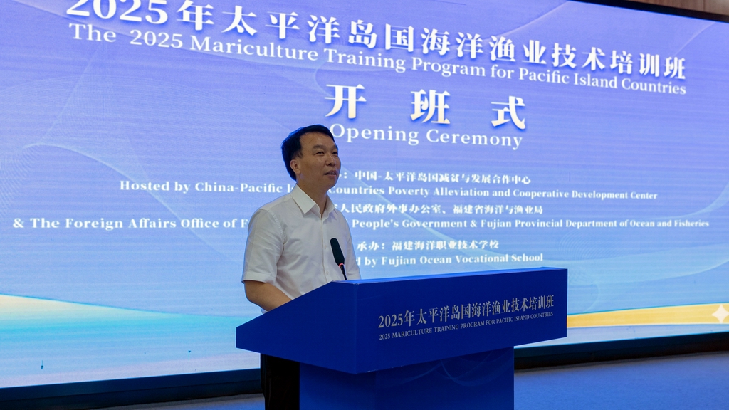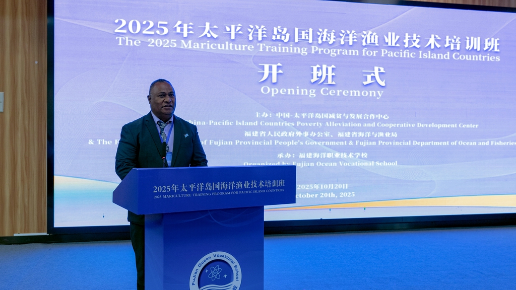 为深化中国与太平洋岛国在海洋渔业领域的务实合作,携手共促蓝色经济发展,共建海洋命运共同体,10月20日,由中国—太平洋岛国减贫与发展合作中心、福建省人民政府外事办公室、省海洋与渔业局主办,福建海洋职业技术学校承办的2025年太平洋岛国海洋渔业技术培训班开班仪式在福州举行。福建省人民政府外事办公室副主任陈国全、省海洋与渔业局副局长刘庆丰等出席仪式并致辞,来自太平洋岛国的18名学员,省外办、省海渔局相关处室负责人和福建海洋职业学校师生代表等约100人参加仪式。福建海洋职业技术学校党委书记张友权主持仪式。
