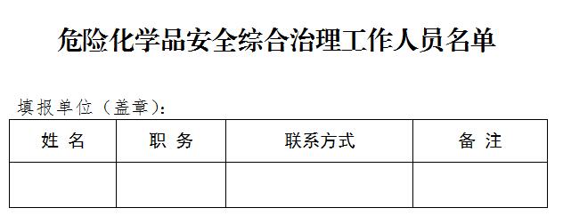 ㈡要形成治理工作合力。要进一步明确和落实危险化学品安全监管职责,加强密切协调配合,按照工作任务分工,认真组织实施相应行业领域危险化学品安全综合治理工作,深化危险化学品“一体化”监管改革工作,形成治理合力,确保取得实效。各设区市海洋与渔业行政主管部门要分别确定1名工作人员负责日常工作的联系和协调,并于2017年3月27日前将名单及联系方式报送省厅安办(见附表)。