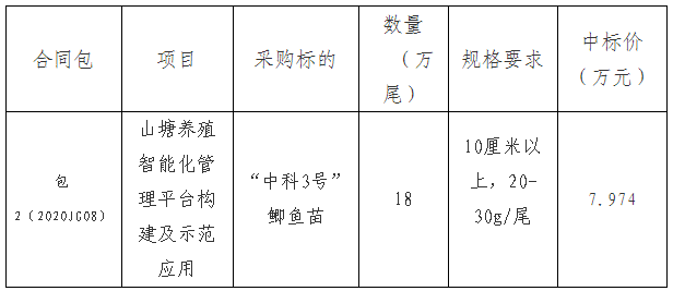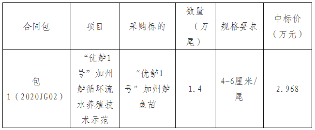 根据项目编号为2020JG02的淡水鱼苗采购(“优鲈1号”加州鲈鱼苗)(以下简称:“本项目”)的询价结果,乙方为成交供应商。现经甲乙双方友好协商,就以下事项达成一致并签订本合同: