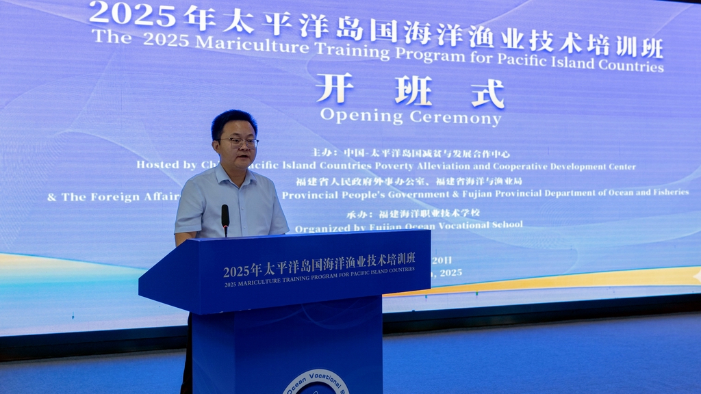 为深化中国与太平洋岛国在海洋渔业领域的务实合作,携手共促蓝色经济发展,共建海洋命运共同体,10月20日,由中国—太平洋岛国减贫与发展合作中心、福建省人民政府外事办公室、省海洋与渔业局主办,福建海洋职业技术学校承办的2025年太平洋岛国海洋渔业技术培训班开班仪式在福州举行。福建省人民政府外事办公室副主任陈国全、省海洋与渔业局副局长刘庆丰等出席仪式并致辞,来自太平洋岛国的18名学员,省外办、省海渔局相关处室负责人和福建海洋职业学校师生代表等约100人参加仪式。福建海洋职业技术学校党委书记张友权主持仪式。